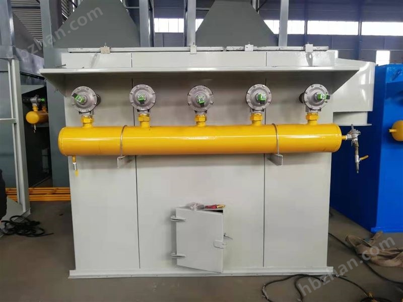 第三步是匹配濾料與清灰方式,這是提升單機(jī)布袋除塵器運(yùn)行穩(wěn)定性的關(guān)鍵。濾料的選擇需與粉塵特性深度適配,除了根據(jù)溫度、腐蝕性等選擇材質(zhì)外,還需關(guān)注濾料的結(jié)構(gòu) —— 覆膜濾料表面光滑,粉塵剝離性好,適合黏性粉塵;針刺氈濾料容塵量大,適合濃度較高的粉塵。濾料的克重與厚度也需考量,克重越高、厚度越大,濾料強(qiáng)度與使用壽命越長,但阻力也會相應(yīng)增加,需在兩者間平衡。清灰方式主要分為脈沖噴吹清灰與反吹清灰,單機(jī)布袋除塵器以脈沖噴吹清灰為主,根據(jù)生產(chǎn)需求可選擇在線清灰或離線清灰:在線清灰時設(shè)備無需停機(jī),清灰過程中部分濾袋仍在過濾,適合連續(xù)生產(chǎn)且粉塵黏性較低的場景;離線清灰時通過關(guān)閉分室閥門實(shí)現(xiàn)單室停機(jī)清灰,清灰更,避免粉塵二次吸附,適合黏性強(qiáng)、濃度高的粉塵。清灰參數(shù)的設(shè)定也需精準(zhǔn),噴吹壓力通??刂圃?0.4-0.6MPa,噴吹周期 30-60 秒,噴吹寬度 0.1-0.2 秒,可根據(jù)濾袋壓差動態(tài)調(diào)整。空氣凈化設(shè)備工業(yè)車間環(huán)保設(shè)備200袋收塵器